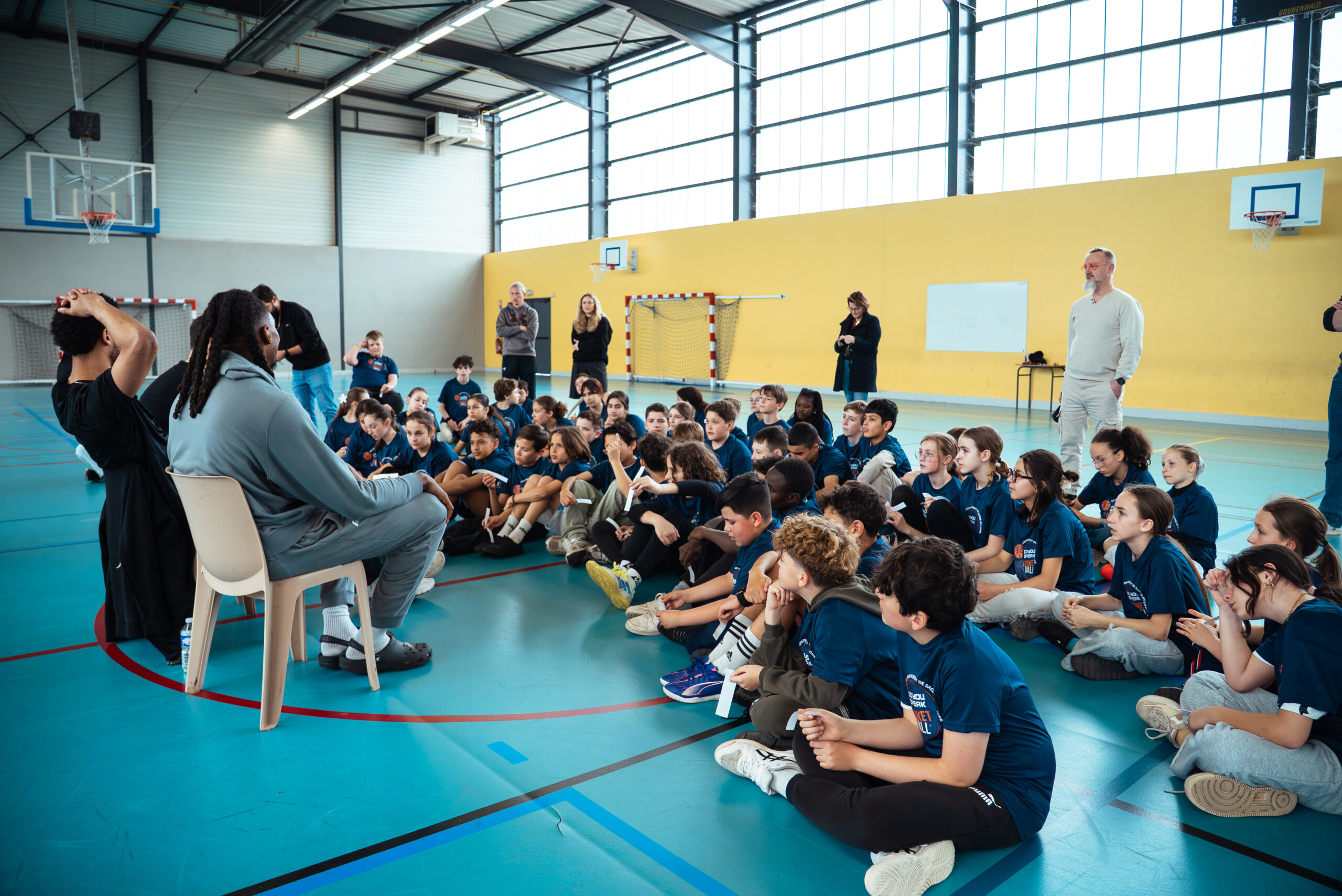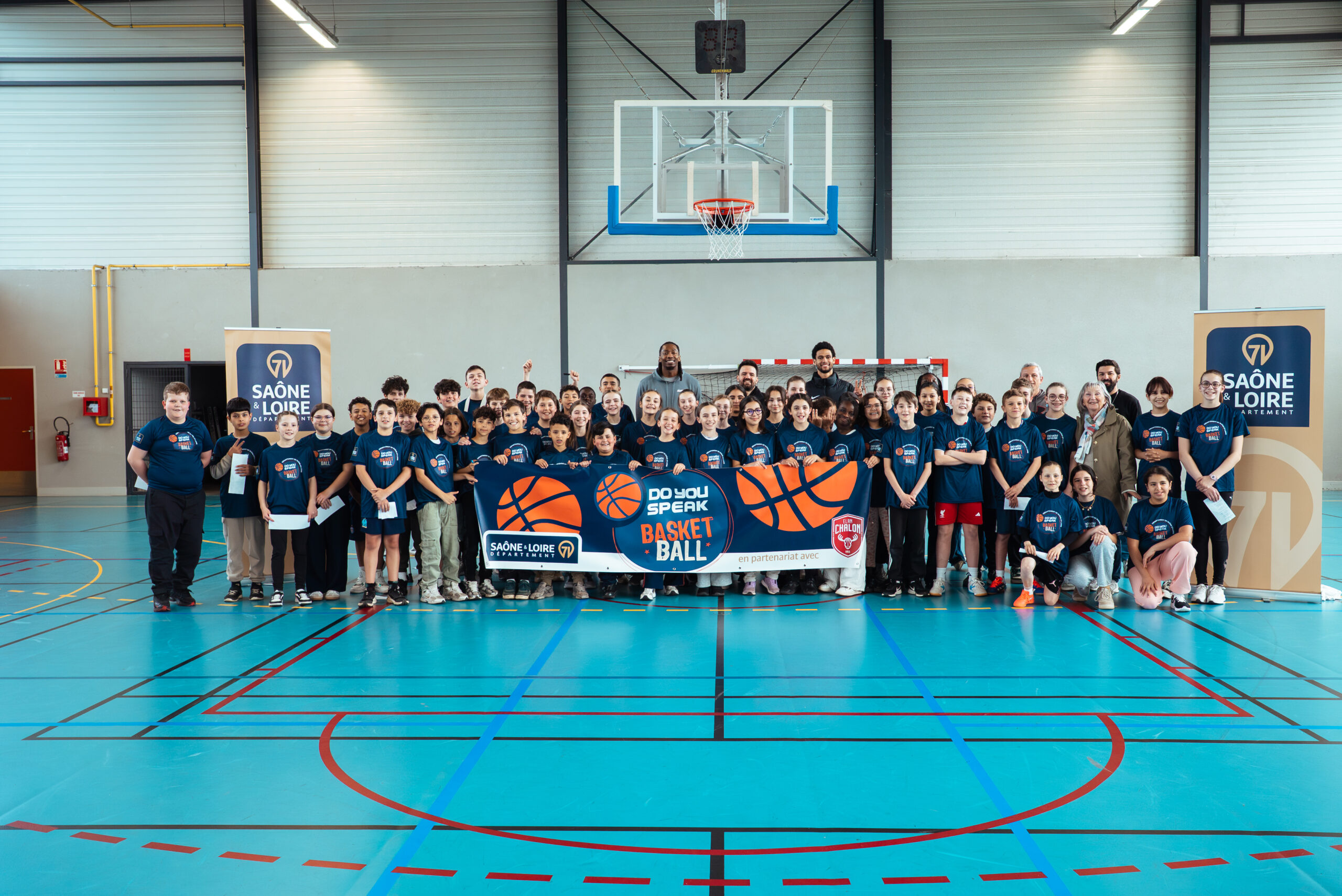 60 élèves de 4ème et de 5ème étaient présents. Au programme pour les collégiens : une séance de basket 100% en anglais, des 1 contre 1, une traditionnelle session questions/réponses et une séance de dédicaces pour terminer cette belle après-midi.