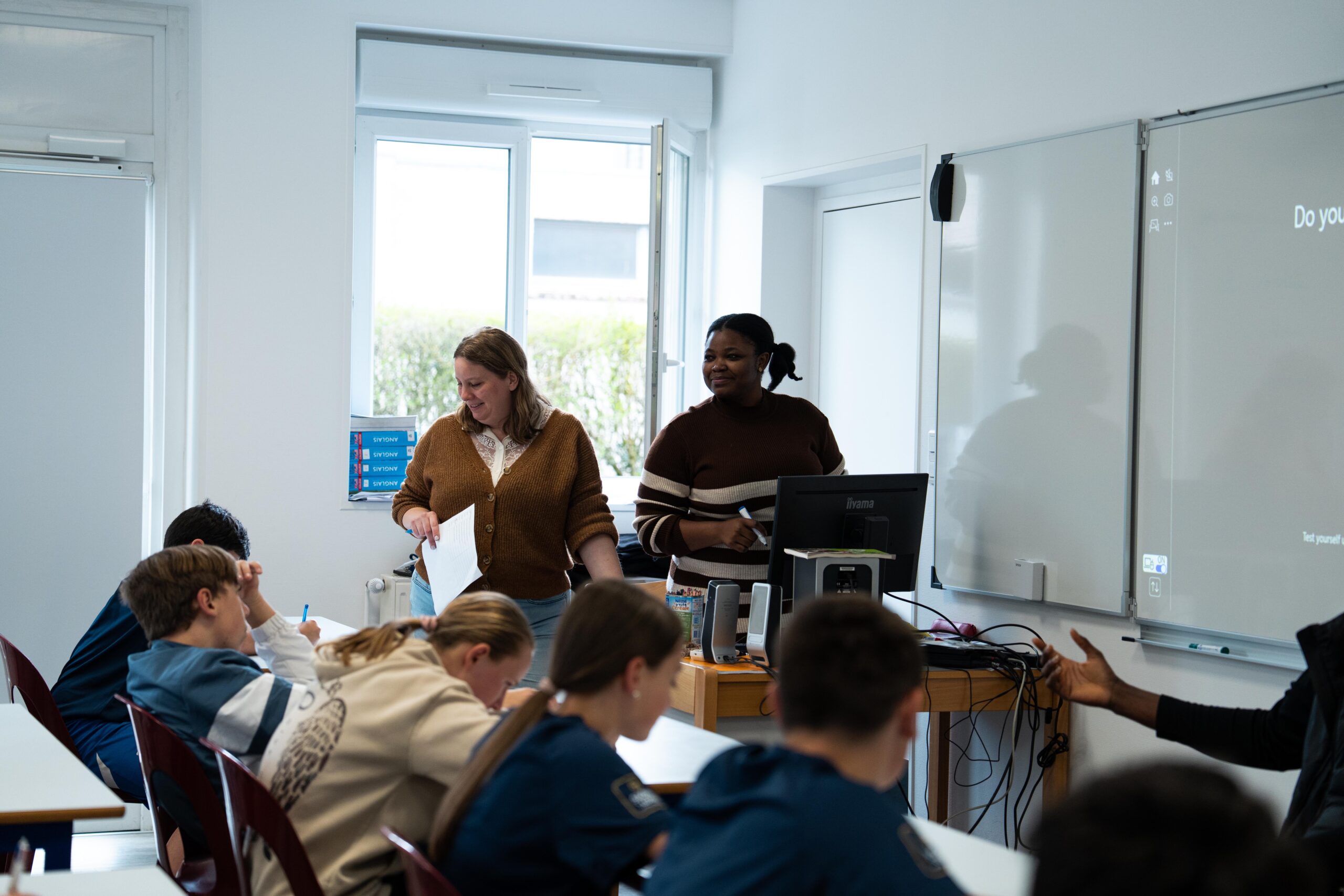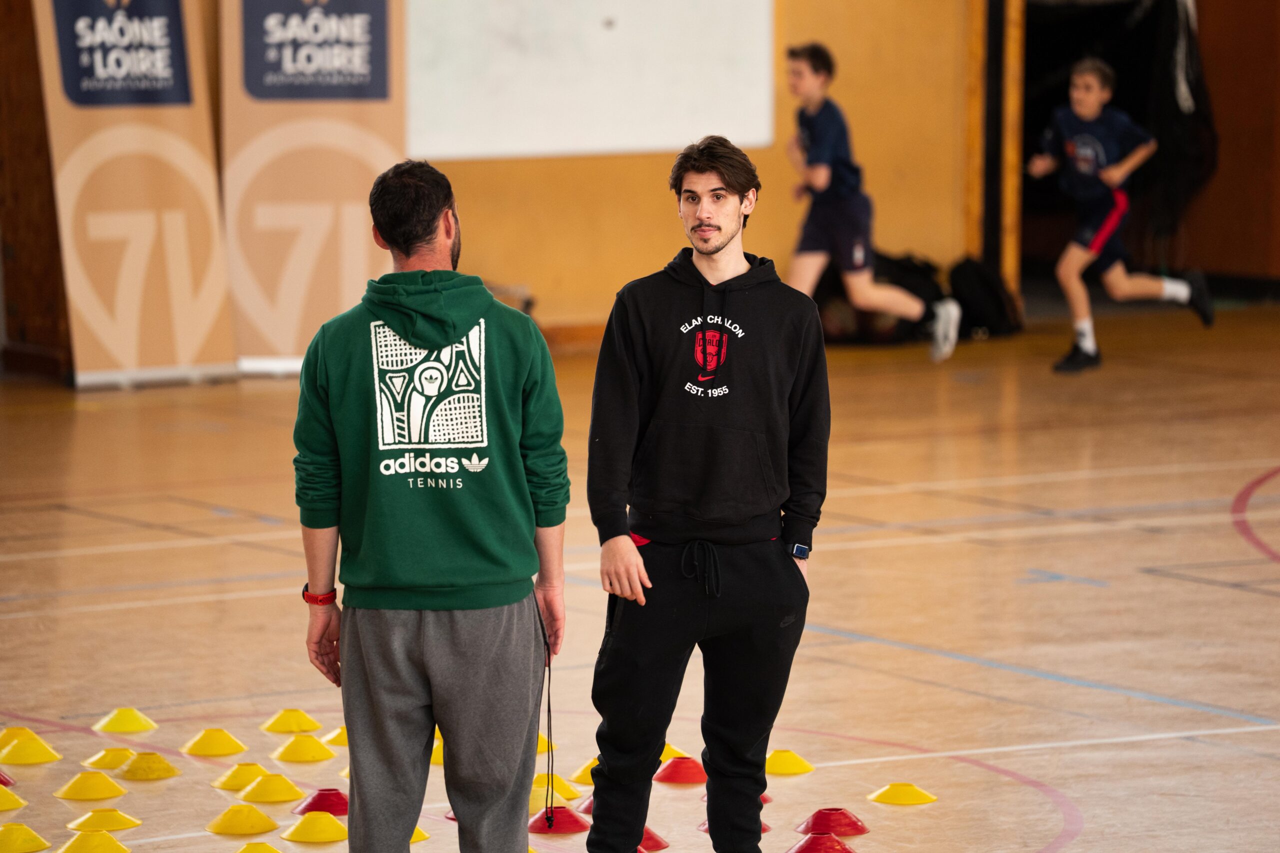 Mathéo, Obinna & Guillaume étaient du côté du collège de Chauffailles. Plus d’une cinquantaine de collégiens étaient présents pour l’occasion. Mathéo et Guillaume menaient la séance de sport pendant qu’Obinna répondait aux questions des jeunes élèves en anglais. Merci à tous pour l’accueil !