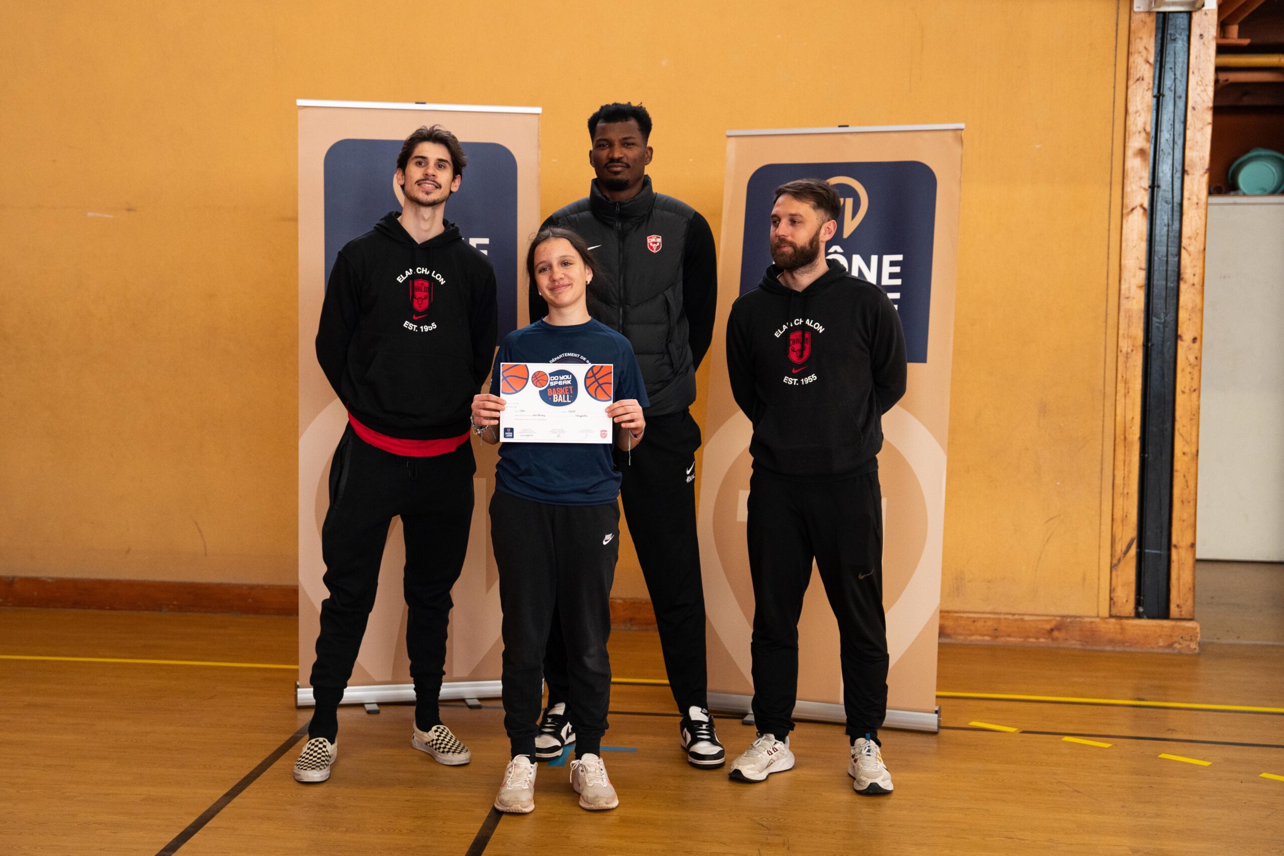 60 élèves de 4ème et de 5ème étaient présents. Au programme pour les collégiens : une séance de basket 100% en anglais, des 1 contre 1, une traditionnelle session questions/réponses et une séance de dédicaces pour terminer cette belle après-midi.