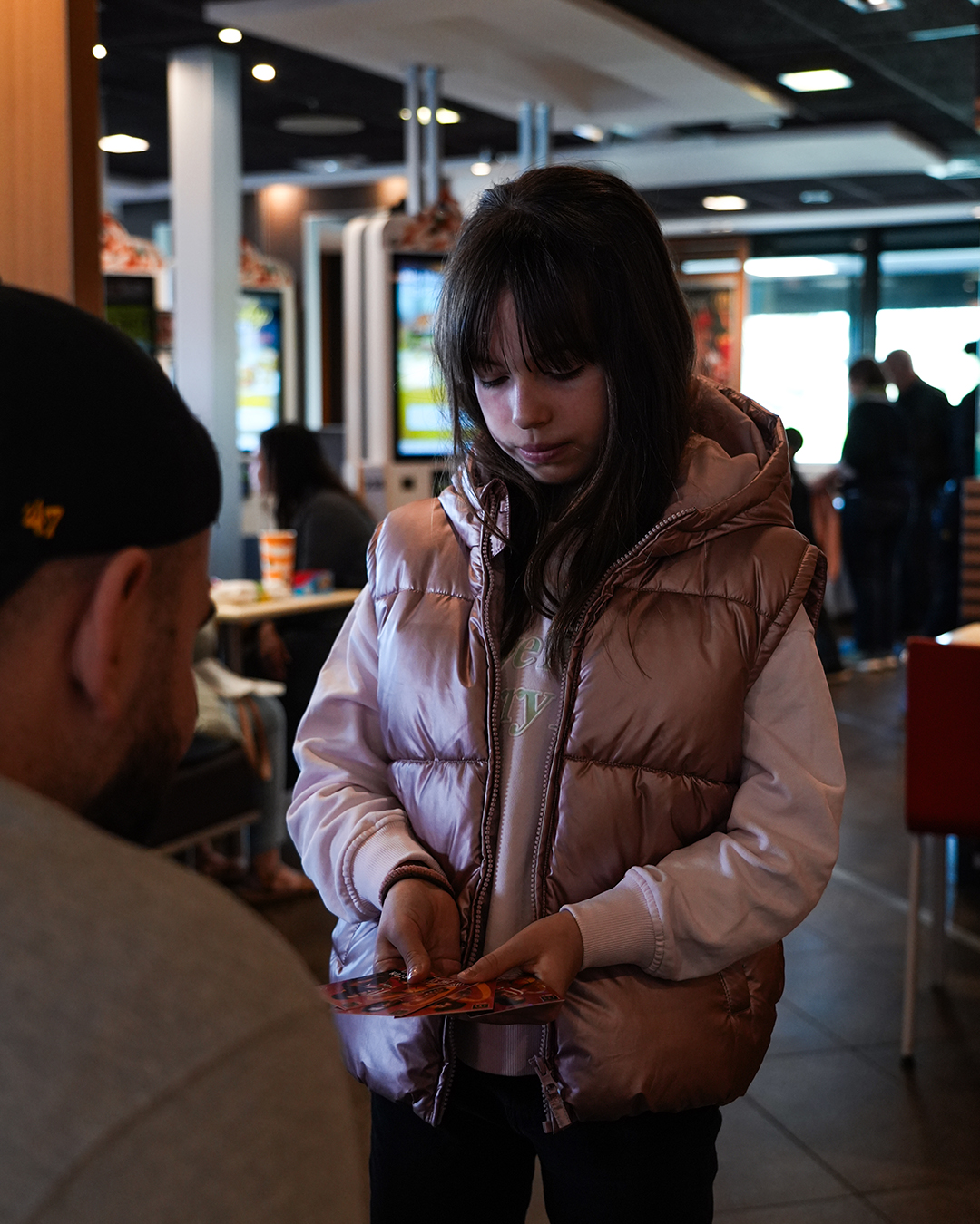 Rendez-vous à la borne, allez dans “Mes Offres” et choisissez votre menu. Rajoutez 1€ et vous avez votre paquet de 3 cartes.