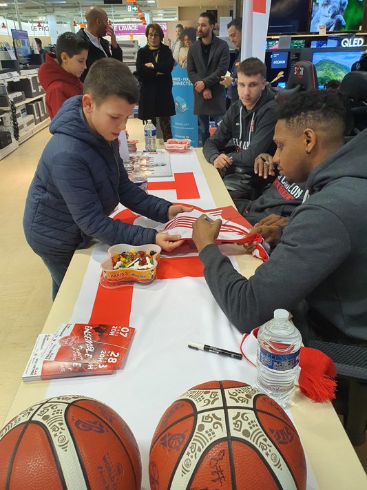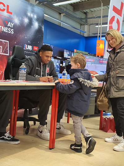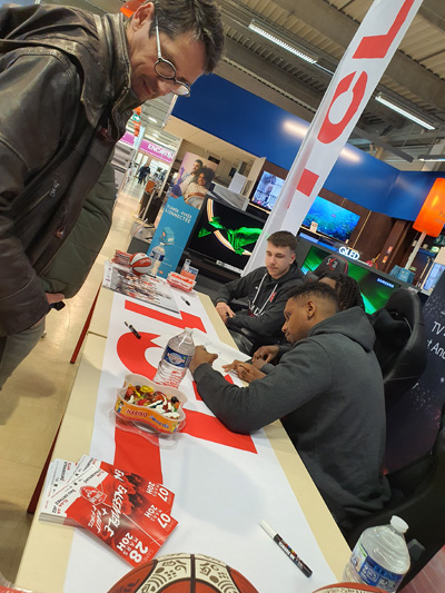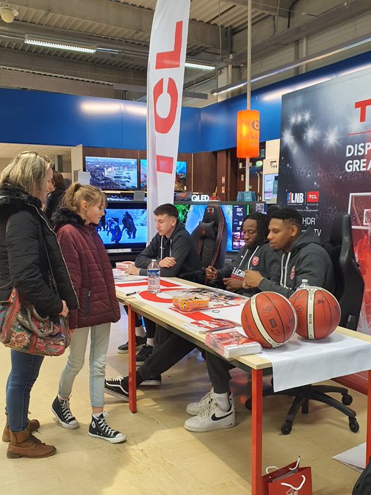 Hier après-midi, Hugo Besson, Jaron Johnson et Assane Ndoye ont offert une séance photos et autographes aux visiteurs du magasin Boulanger à Chalon Sur Saône en partenariat avec TCL et la LNB.