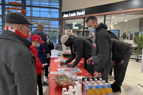 Samedi après-midi, 5 joueurs se sont retrouvés chez notre partenaire Leclerc Lux pour une séance dédicaces. Plusieurs personnes attendaient impatiemment Mickael, Antoine, Jonathan, Babacar et Sitraka. Pour l’occasion, 50 places ont été offertes aux clients lors de leur passage en caisse.
